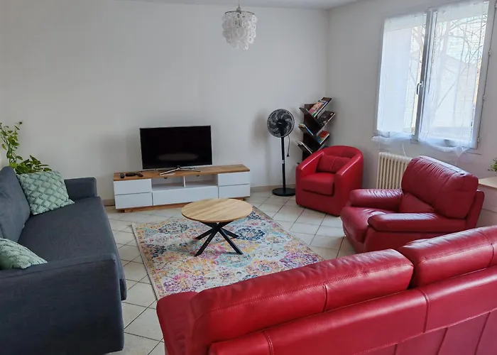 - ❓Wie groß ist die Entfernung zwischen der Maison, Terrasse, Parking, 4Lits, Et Canape Lit, 7Personnes und dem Flughafen Poitiers-Biard?Diese Maison, Terrasse, Parking, 4Lits, Et Canape Lit, 7Personnes liegt 5 vom Flughafen Poitiers-Biard entfernt und ist in 10 Minuten mit dem Auto erreichbar.